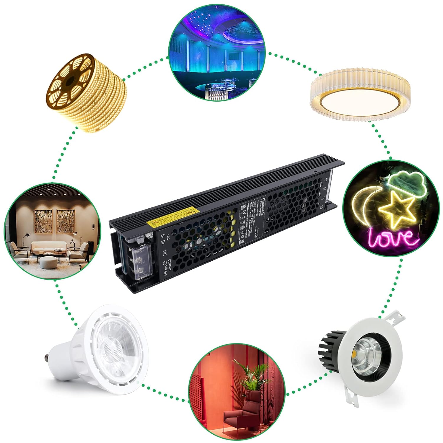 Stabiler Ausgang - Der dimmbare LED trafo kann DC 24V bei 4.16A mit einem Maximum von 100W ausgeben und kann mit einer konstanten stromquelle zwischen AC 200-240V (50/60hz) verwendet werden.