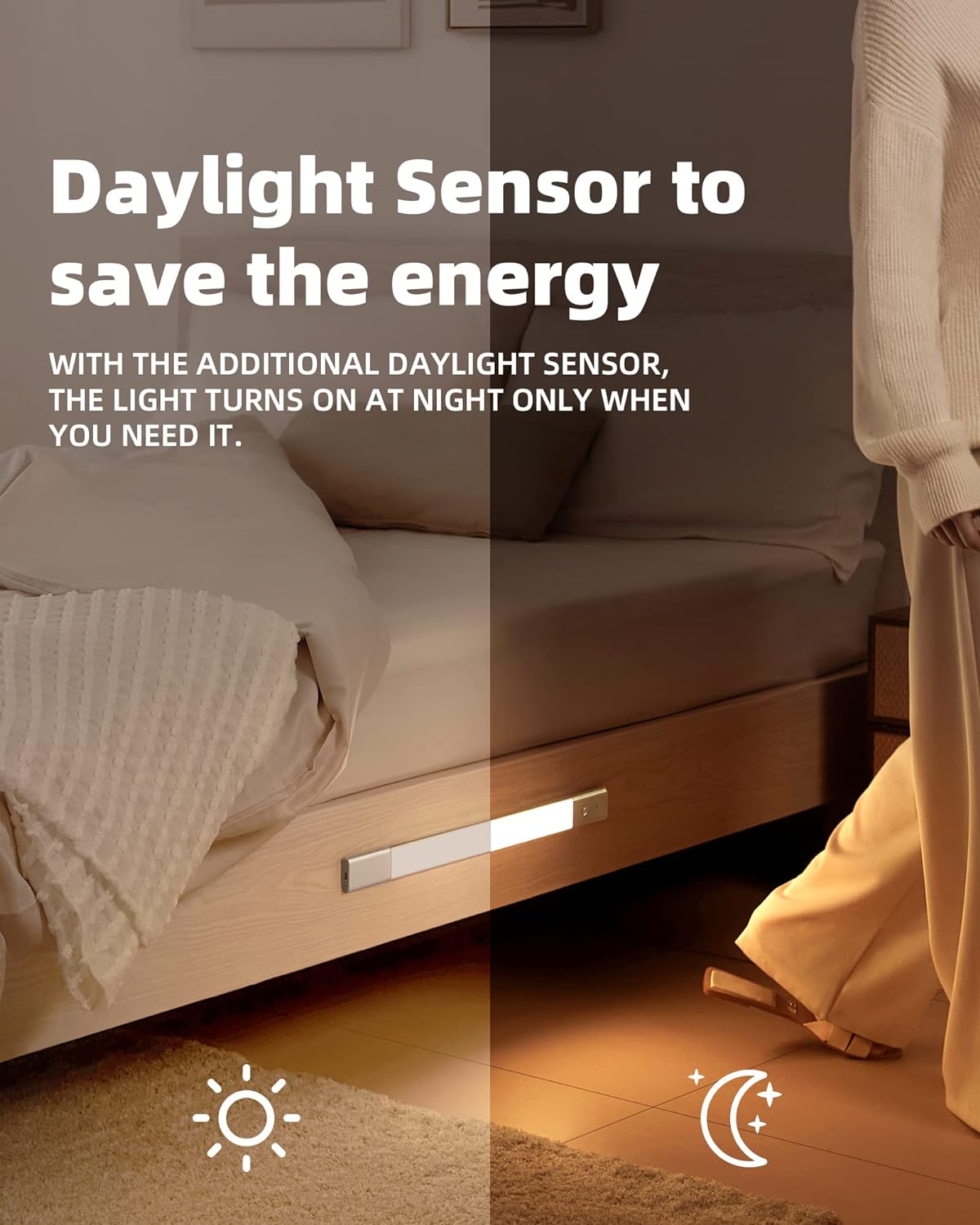 - 【Berührungssteuerung und Dimmen】 Die Berührungstaste ist nicht nur eine elegante Art der Interaktion, sondern auch für weitere Steuerungsfunktionen vorgesehen. Einfaches Antippen schaltet das Licht manuell ein und aus, langes Drücken stellt die Helligkeit ein. Zurücksetzen des Lichts auf Auto-Modus durch eine einzige Berührung jederzeit.