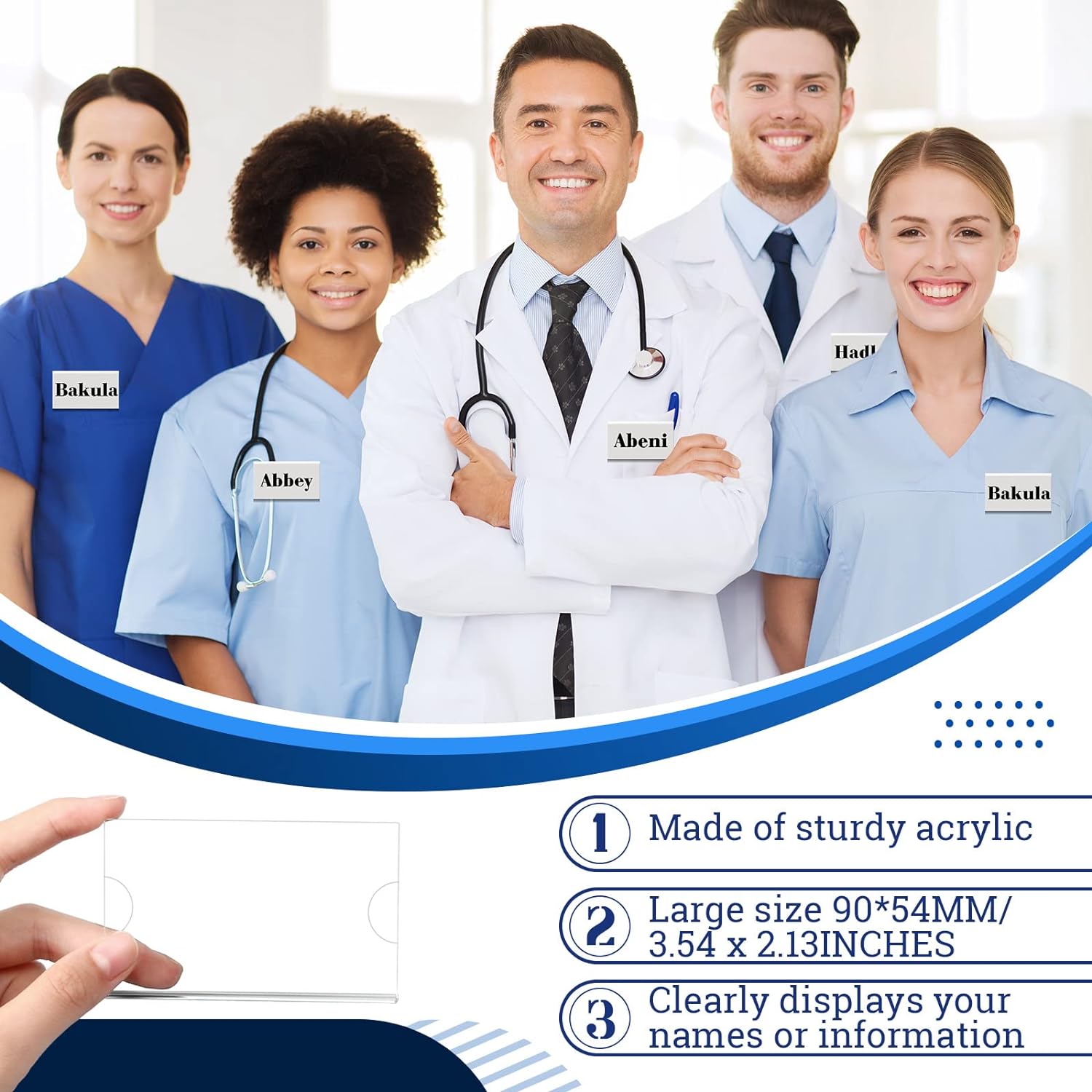 Zuverlässig und geeignet: Selbstklebende Namensschilder mit Magnet bestehen aus hochwertigen, transparenten Acrylmaterialien, bitte reißen Sie vor Gebrauch die Schutzfolie auf der Ausweishülle ab; Die Größe beträgt etwa 90 x 54 mm/ 3,54 x 2,13 Zoll und sie sind für die meisten Karten geeignet