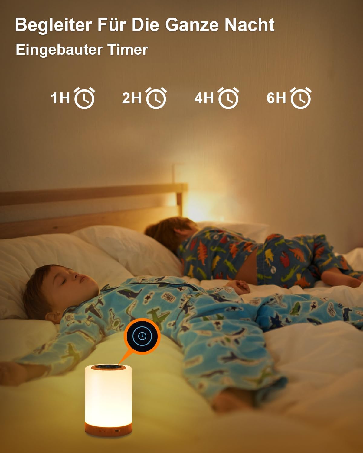 【Nachtlicht mit Timer】Die nachtlicht stilllicht kann so eingestellt werden, dass sie nach 1, 2, 4 oder 6 Stunden ausschaltet (der Timer hat keine Speicherfunktion), ein Weihnachten Geschenk für Freunde und Kinder, Weihnachten Deko, es eignet sich auch hervorragend als touch nachtlicht dimmbar für das Schlafzimmer, Wohnzimmer, oder kleine lampe Babyzimmer, Kinderzimmer.