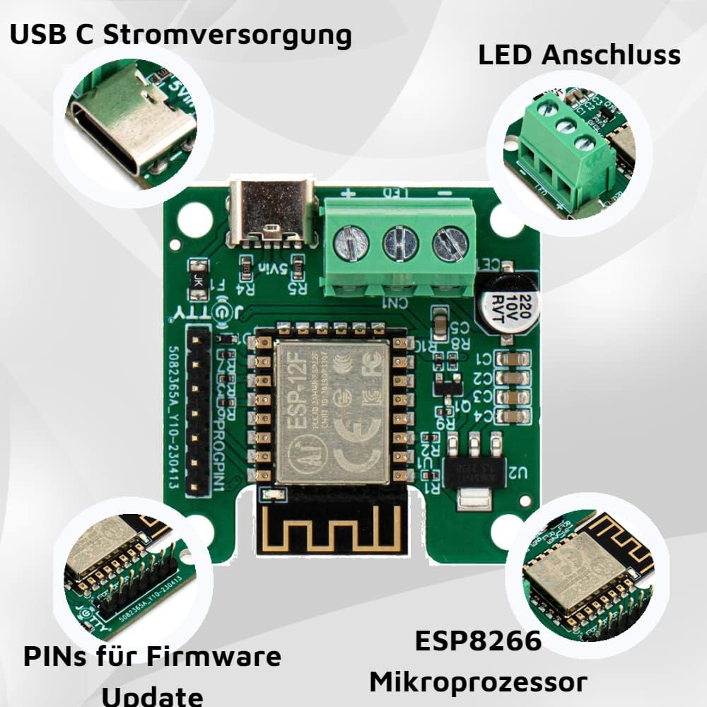 💡Leistungsstarker ESP8266-Chip mit WIFI: Der leistungsstarke ESP8266-Chip sorgt für eine zuverlässige Verbindung und Steuerung Ihrer LED-Streifen über WIFI.
