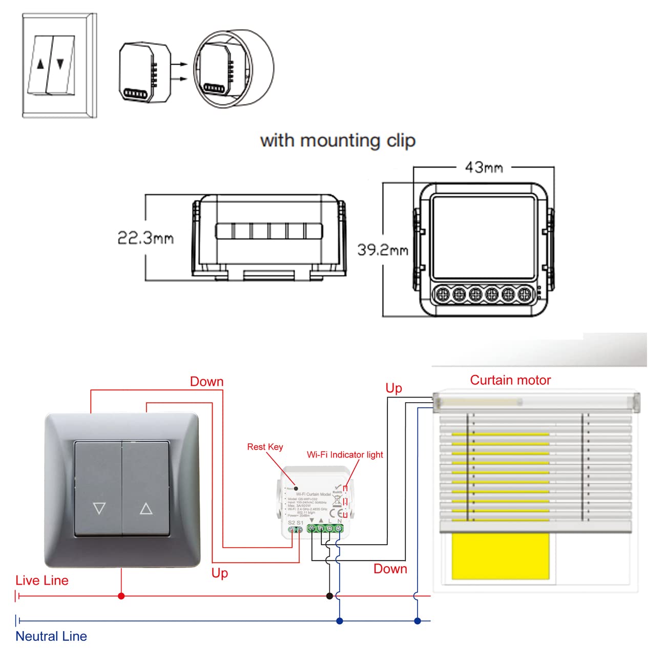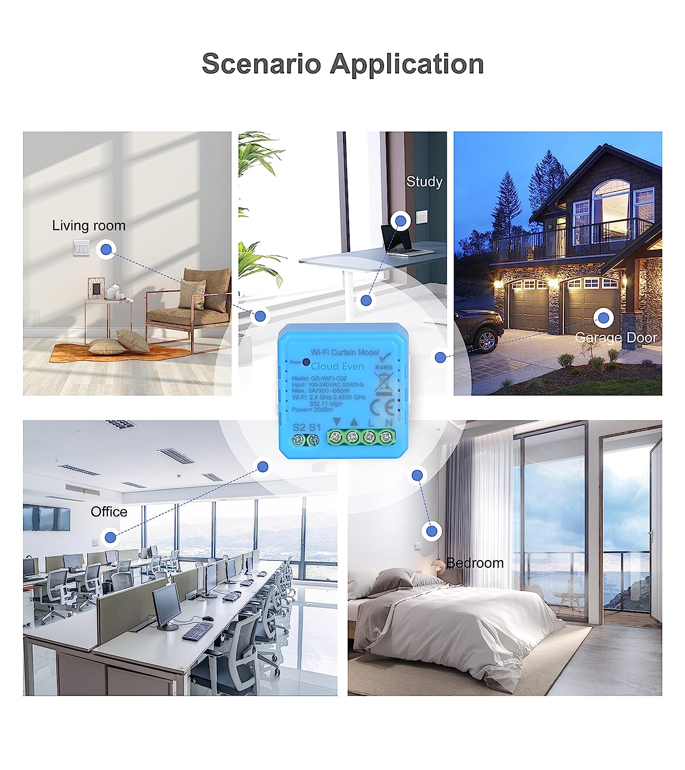 Kompatibel mit dem Originalschalter für Rollläden: Cloud Even WLAN-Rollladenrelais ist klein genug, um in der 503-Box, in der Anschlussdose und in der Wandsteckdose installiert zu werden. Verbinden Sie es mit jedem 4-adrigem Rolladenmotor und Sie können den traditionellen elektrischen Rollladen intelligent machen (max. 3A 300-660W) und steuern Sie es von jedem Teil des Telefons, was Ihnen ermöglicht, die ursprüngliche Funktion des Wandschalters beizubehalten