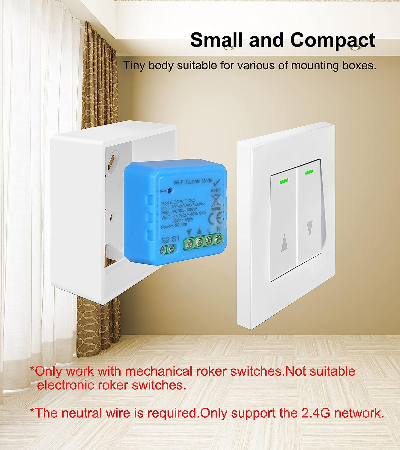 Sprachsteuerung mit Alexa und Google Home, Bedienungsmodul für elektrische Rollläden, Smart Life App-Steuerung, Timer Switch für Fensterläden und Vorhänge